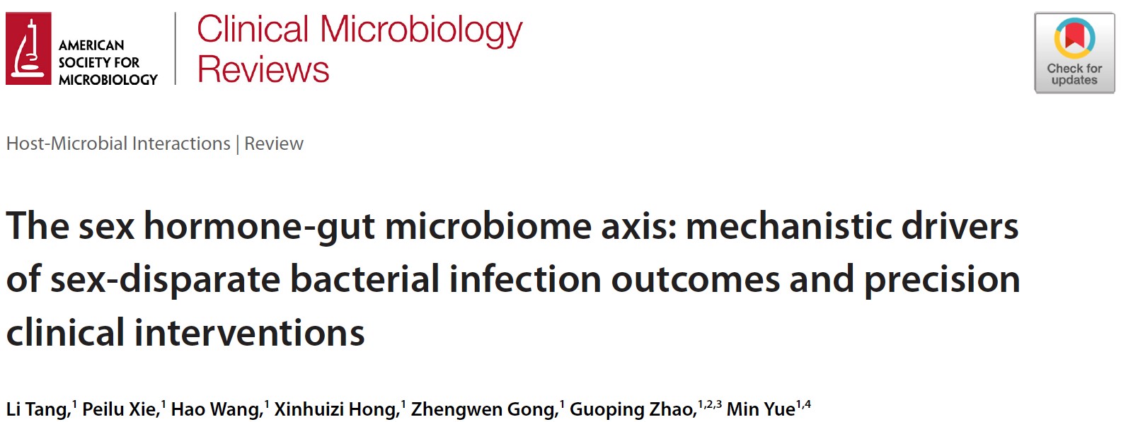 近日,国科大杭州高等研究院生命与健康科学学院乐敏研究员团队在美国微生物学会旗舰期刊 Clinical Microbiology Reviews 【中科院一区,IF5: 33.3】发表题为 《The Sex Hormones–Gut Microbiome Axis: Mechanistic Drivers of Sex-Disparate Bacterial Infection Outcomes and Precision Clinical Interventions》的综述论文(DOl:10.1128/cmr.00236-25)。研究团队从跨学科视角出发,系统性阐述了“性激素–肠道微生物组轴”对 H. pylori、Salmonella、Listeria、C. difficile、EHEC、Vibrio 等多类重要病原体中反复观测到的性别差异现象给出了机制层面的解释,弥补了微生物感染病学领域长期缺失的关键理论空白。