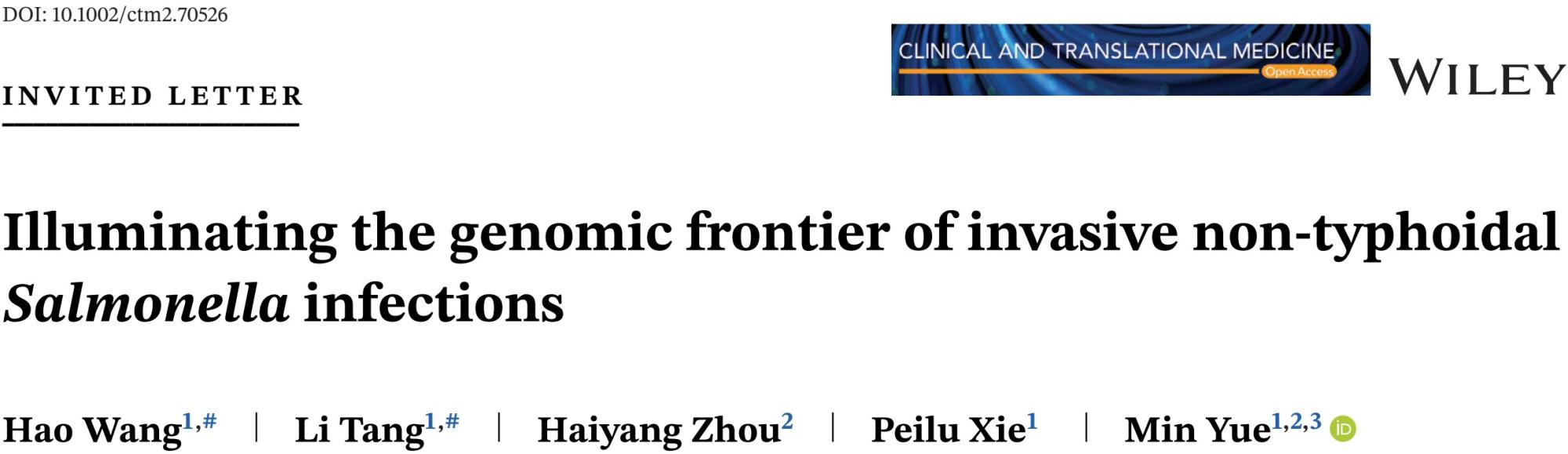 2024年10月,世界卫生组织(WHO)正式将非伤寒沙门菌(Non-typhoidal Salmonella)列为“国际关注的突发公共卫生事件(PHEIC)”全球高风险病原体。然而,这一预警并非空穴来风——侵袭性非伤寒沙门菌(iNTS)正以高达18.1%的致死率和惊人的进化速度,悄然成为全球公共卫生的重大威胁。近日,国科大杭州高等研究院生命与健康科学学院乐敏研究员团队在期刊Clinical and Translational Medicine发表题为“Illuminating the genomic frontier of invasive non-typhoidal Salmonella infections”的受邀文章。该文章对团队此前在Nature medicine上发表的研究成果“Genomic census of invasive nontyphoidal Salmonella infections reveals global and local human-to-human transmission”进行了细致的解读分析。