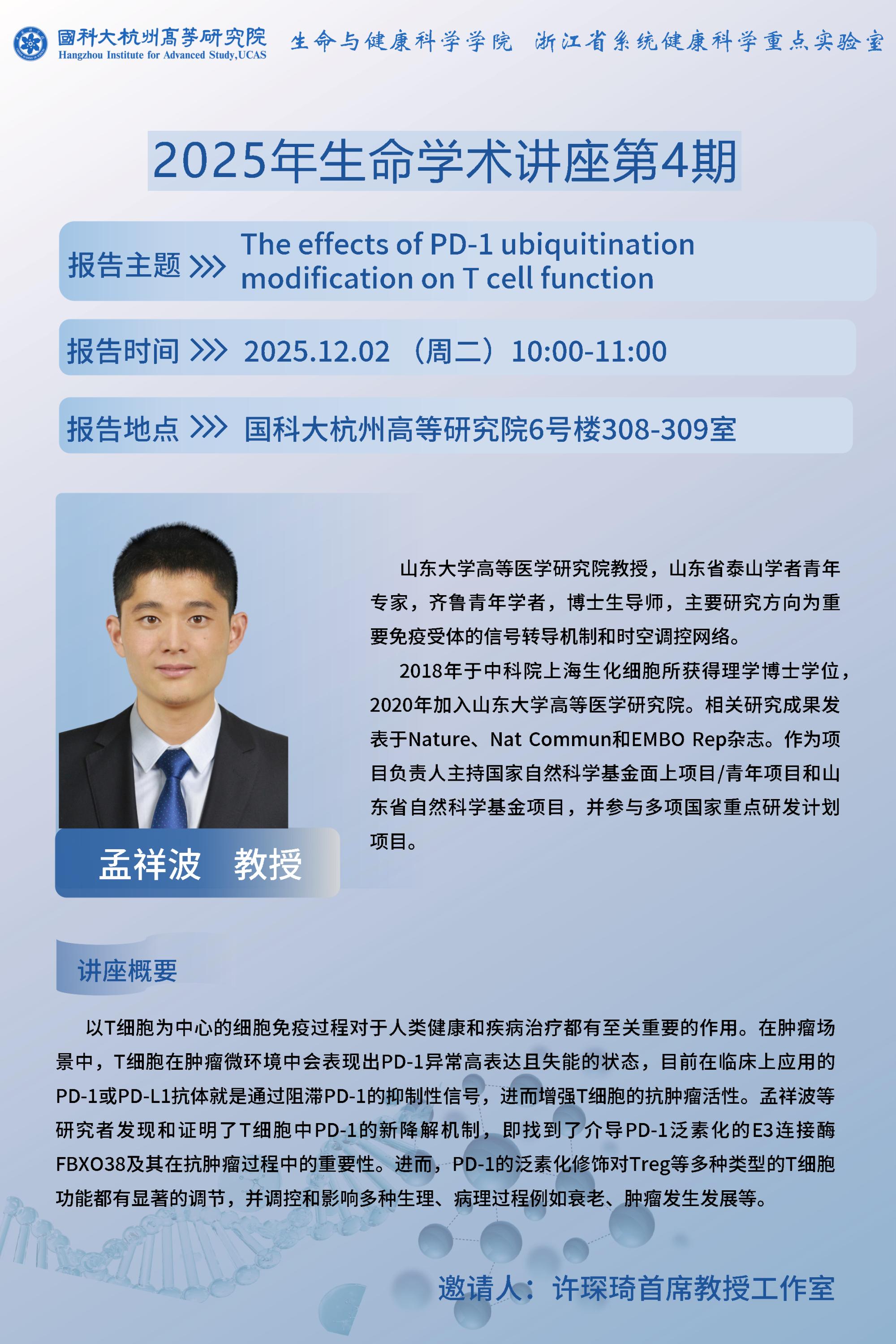 报告主题:The effects of PD-1 ubiquitination modification on T cell function