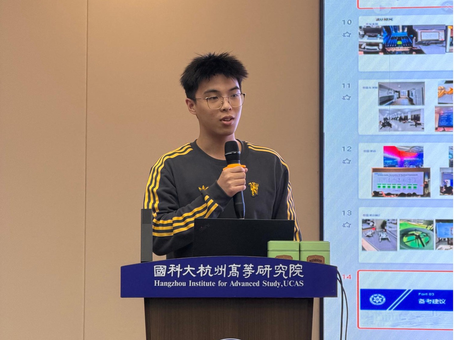 随后,智能学院两位研一学生代表结合自身在国科大杭高院的学习实践,分享了课程选择、科研入门与时间管理的宝贵心得。他们特别提醒学弟学妹夯实数理基础、主动参与课题,为未来深造提前蓄力。