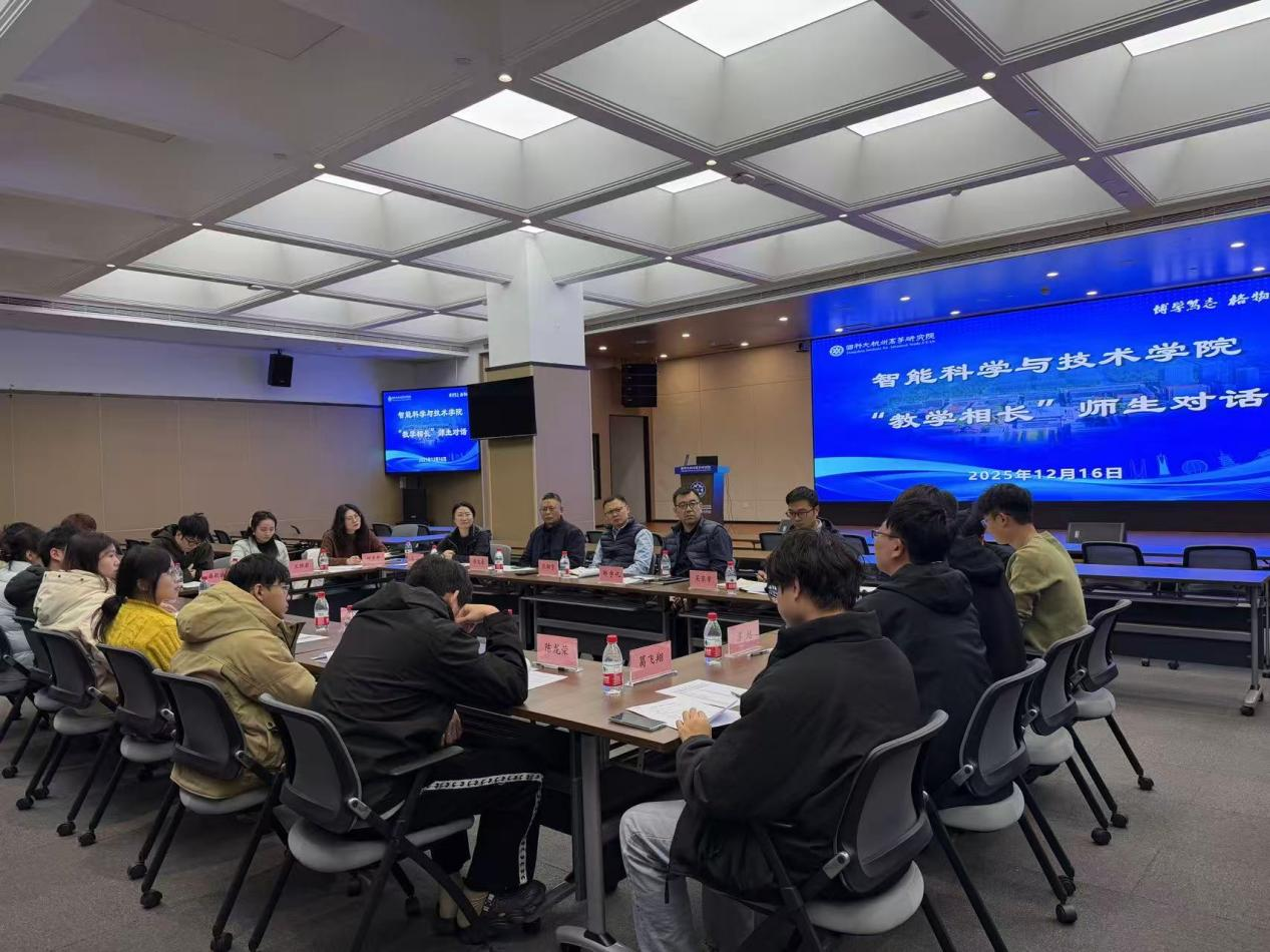 2025年12月16日下午,智能学院在4号楼318报告厅成功举办“教学相长”主题师生交流会。杭高院教务处相关负责人、学院领导班子、教师代表、办公室人员与2025级学生代表共同参会,围绕入学一学期以来在课程教学、培养体系、学位发展等方面的困惑与建议,开展坦诚而深入的对话。